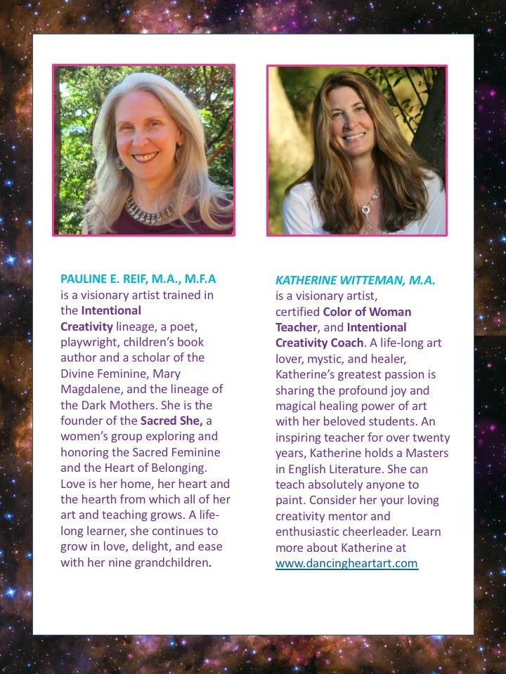 Together, through reflection, poetry, meditation and the magical painting process of Intentional Creativity, we’ll guide you into the loving arms of our Divine Mother. In a joyful, step-by-step painting process, we’ll each create a beautiful icon that is encoded with Her healing energy, sacred wisdom, sweet blessings, deep compassion, and boundless love.
